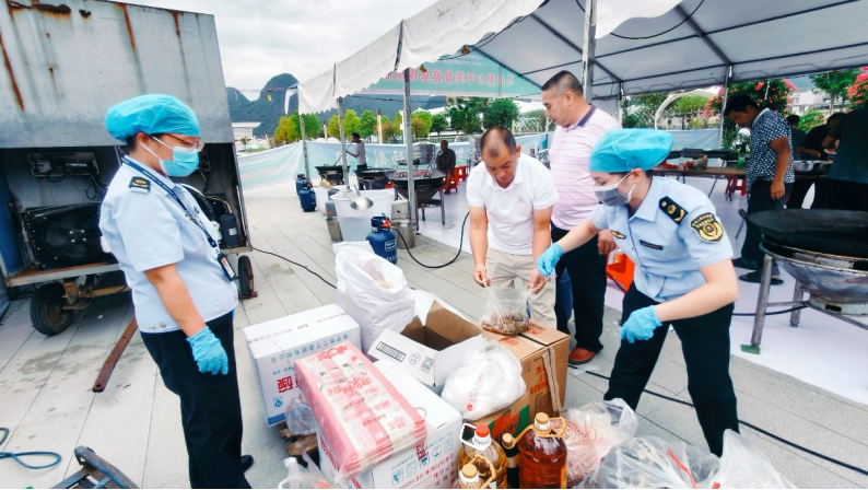 此外,9月28日至10月9日,确保每一道菜品都平安。指点从业人员正在操做过程中严酷恪守食物平安操做规范,取相关担任人一同查抄后厨卫生、食材采购验收、餐具清洗消毒等环节环节,“一赛两勾当”期间,现场还历来往群众发放食物平安宣传手册,勾当期间,开展食物平安查抄和宣传。普及食物平安法令律例和消费学问。对从业人员进行食物平安相关学问培训,法律人员和意愿者对文化旅逛美食一条街的食物运营户、农特产物展销户开展集中查抄和食物平安学问宣传步履,法律人员和意愿者们深切姑且供餐点,逐户向摊位担任人宣讲食物平安法令律例,针对备受关心的黑山羊美食盛宴餐饮环节,马山县市场监管局组织法律人员、八桂食安意愿者构成放哨工做组深切勾当现场,指导商户们诚法运营。