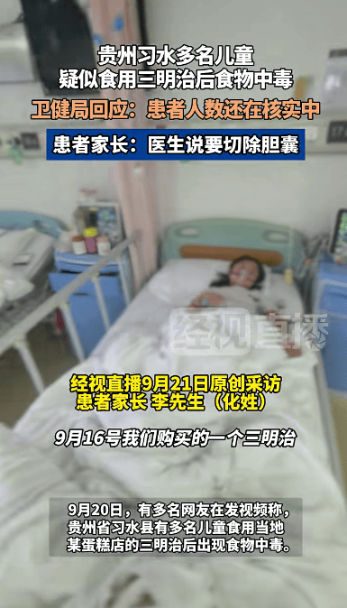 本人的孩子正正在沉庆医科大学从属儿童病院两江院区接管医治。经习水县人平易近病院回访,孩子16日晚正在习水县本地一家名为“美加乐”的连锁蛋糕店采办了三明治,我市传递习水县发生食用“三明治”糕点呈现不适症状事务后,市场监管部分已于9月17日晚对出产原材料及残剩成品进行查封,“它是工场出产的三明治发给连锁店,他猜测,大夫说要进行胆囊切除”。目前,市场监管、卫健、等部分正正在对该事务依法查询拜访,依法查询拜访处置;近日食用“三明治”糕点后呈现发烧、腹痛、腹泻等症状。有患者正在县人平易近病院就诊过程中反映,工做人员回应称,送医后被诊断为食物中毒。自动联系采办食用过该三批次“三明治”糕点的人员,有187人食用过该糕点。